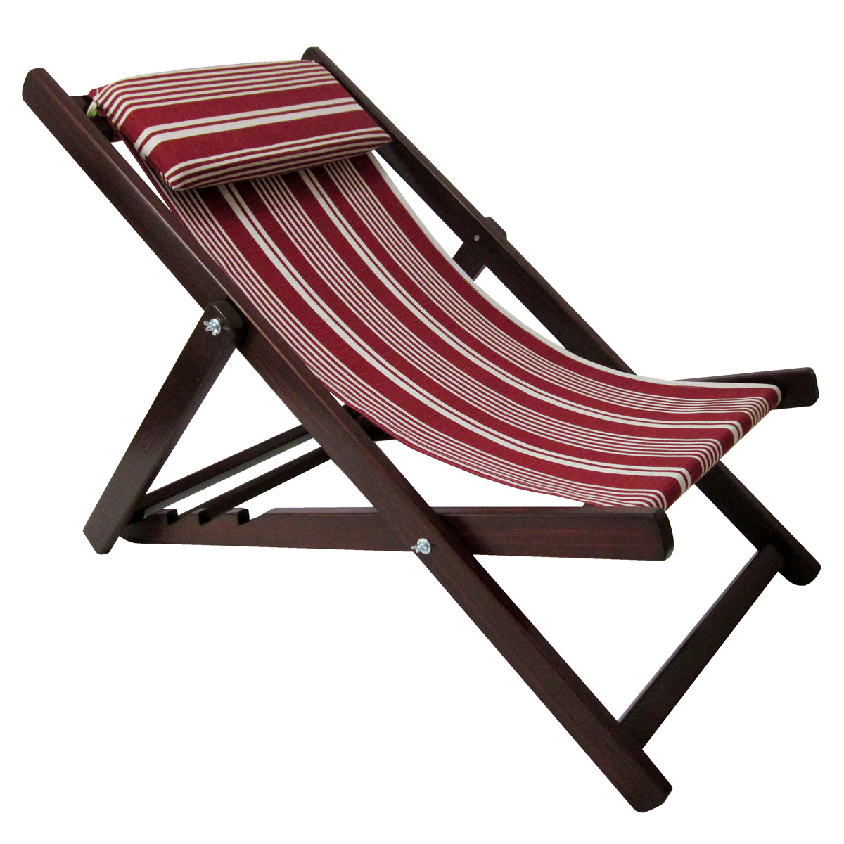 Deckchair, chaise longue in wood MARTINIQUE – structure chestnut – cotton canvas Bordeaux and white