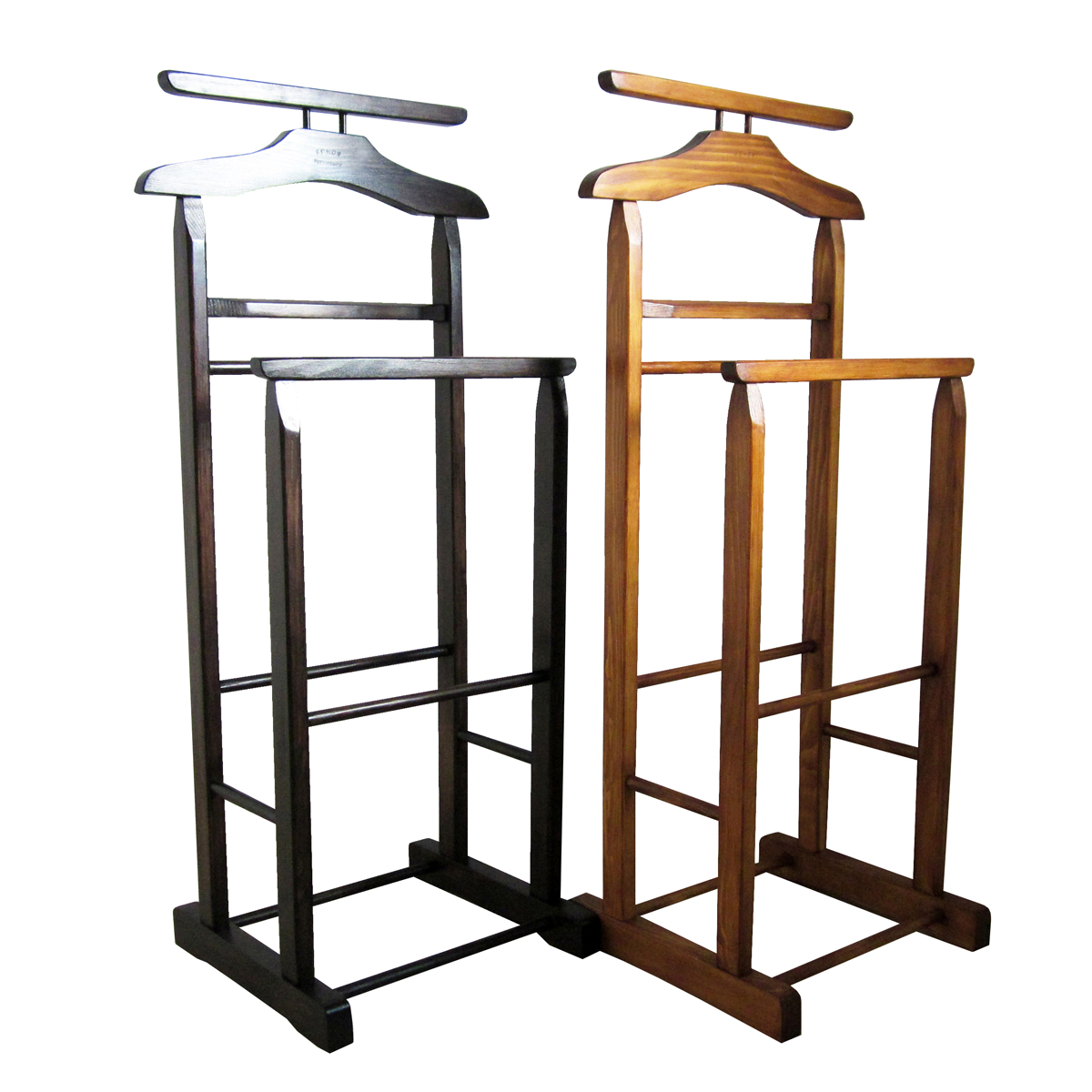 This set of 2 ÉVOQUE valets, in solid pine, is composed of a valet color wenge and another hazelnut color.
